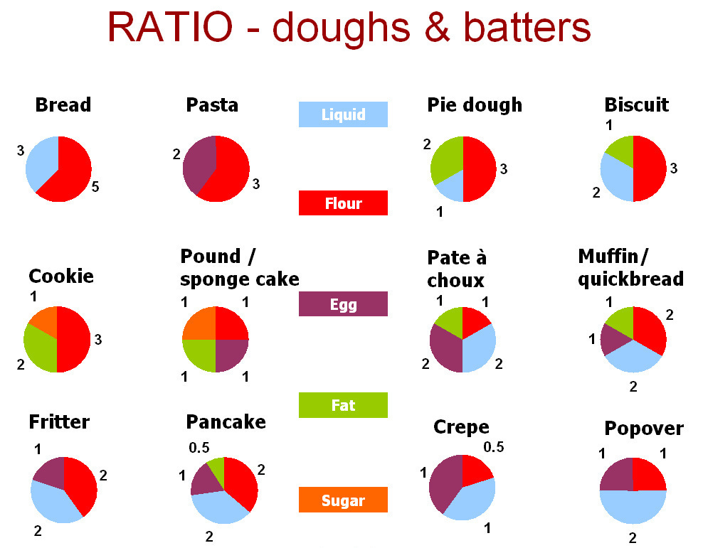 A commonplace example where composites apply is cooked food. Michael Ruhlman did a fascinating mapping of common foods in his book Ratio. Here’s one interpretation (from the no-longer-active tuscanfoodie.com site):